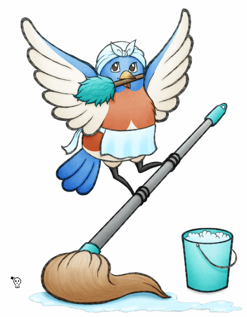 - Puhtaita moppeja (ja astia likaisille mopeille!)